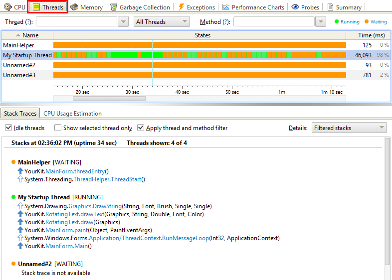 امکان پروفایل کردن thread ها جهت شناسایی thread های منتظر، بلوکه شوند و بلوکه کننده